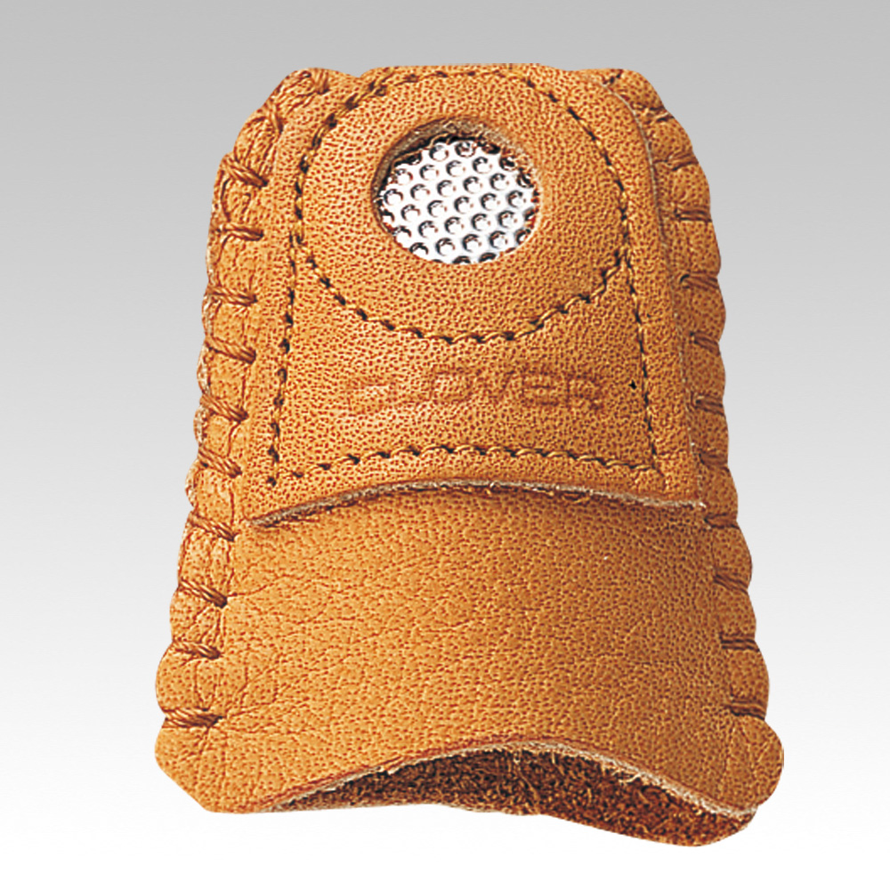 指にやわらかくフィットするソフトレザーにディンプル(くぼみ)加工のコインをおしゃれにセット。金属部分に針を押し当てて、硬い布でも針を強く押すことができます。